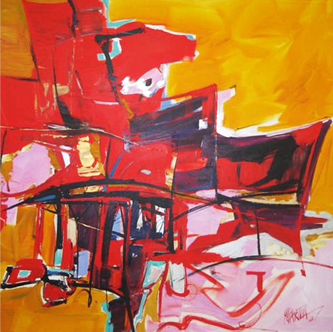 Состоит из 102 полотен. На них губкой с краской нанесены изображения силуэтов реальных объектов.